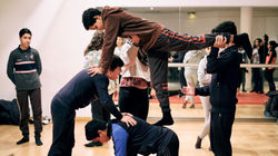 Romain, photographe du projet, était présent à cette séance pour habituer les élèves à l’appareil photo bien qu’ils se soient habitués aux clichés de Delphine. Rachid a repris les entrainements de la fois précédente. Les élèves étaient plus déconcentrés à cause de l’épisode neigeux mais nous les avons aidés. Plusieurs groupes se sont ensuite formés pour faire les figures acrobatiques et certains se sont testés au jonglage en voltige. On sent qu’ils intègrent tous des automatismes bien que chacun ait sa préférence entre jonglage et acrobatie. Nous avons ensuite repris les entraînements de passing. A nouveau en ligne face aux miroirs, Rachid a proposé un enchaînement de jonglage avec échanges de places, le tout dirigé par Elisei : on commence à tenir quelque chose ! La séance est passée très vite…